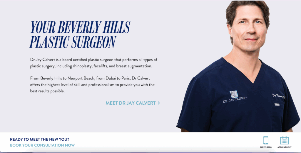 Dr. Jay Calvert operates in Beverly Hills and Newport Seaside as a board-certified plastic surgeon. He focuses on facelifts, revision facelifts, rhinoplasty and breast procedures. His technical perception and pioneering strategies permit sufferers to attain pure, balanced refinement.