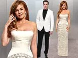 Fisher turned heads in a strapless satin gown featuring an intricately beaded floor-length skirt, paired with statement earrings. Her red locks cascaded in a glamorous bouncy blowout.