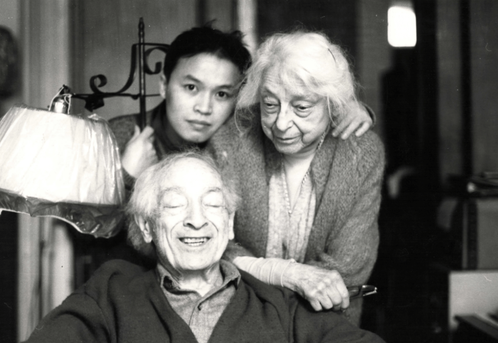 Phong Bui with Meyer and Lillian Schapiro. c. 1994. Photograph by Eyal Danieli