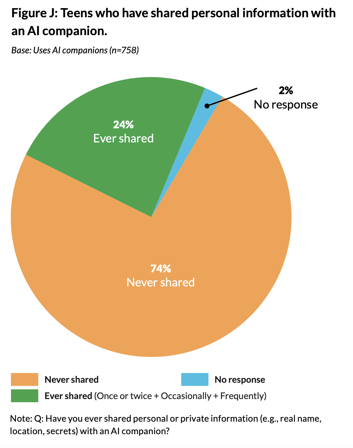 From Frequent Sense Media 2025 report, “Speak, Belief, and Commerce-Offs: How and Why Teenagers Use AI Companions.”
