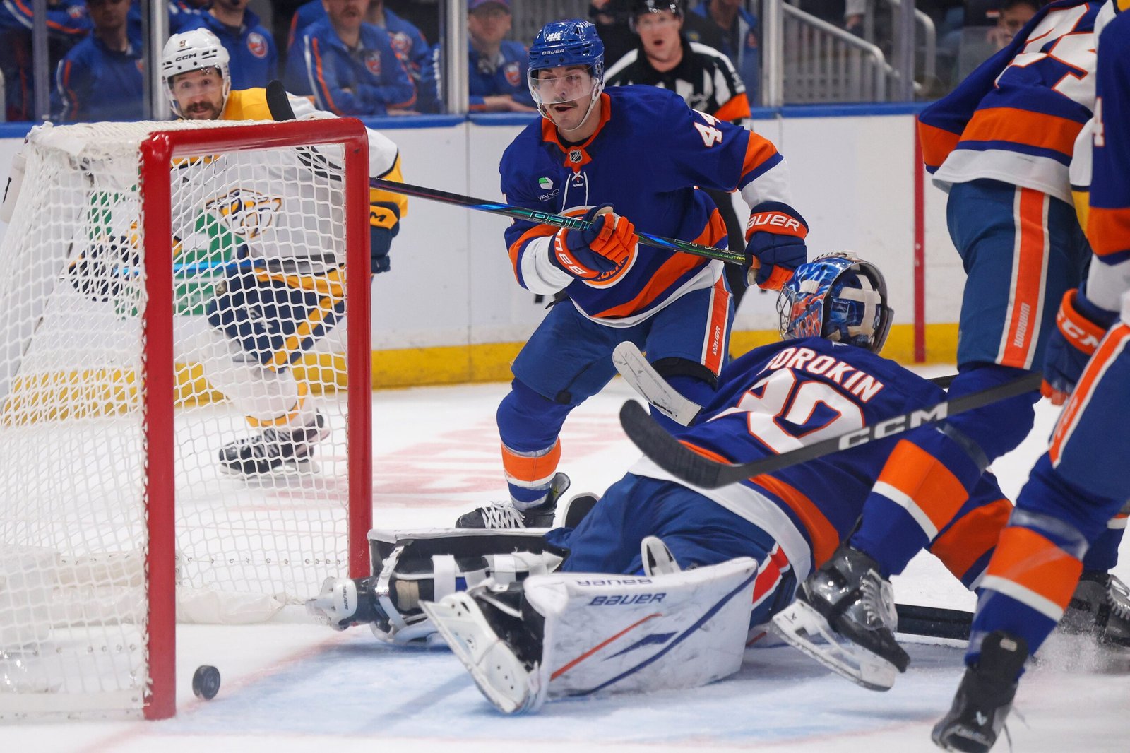 Jean-Gabriel Pageau regained the lead for New York at 7:21 of the second, scoring off the rush to put the Islanders up 3-2. However, Forsberg’s second goal—a shot from the left post that trickled over the line—tied it again. Sorokin shone in the period, stopping 22 shots, including a key save on Michael Bunting, but defensive lapses left him exposed.
