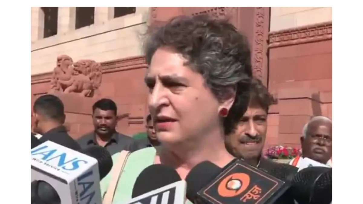Speaking to reporters outside Parliament, Priyanka Gandhi Vadra addresses the ongoing political tensions. She criticizes the government’s approach to the LPG shortage, warning that the crisis worsens due to the US trade deal and global conflicts.