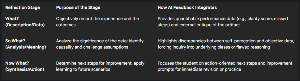 Goal AI knowledge turns into most helpful when it suits right into a structured reflection framework that guides college students from easy recall towards actual evaluation and motion. Borton’s growth framework is a transparent manner to do that, constructed round three phases: