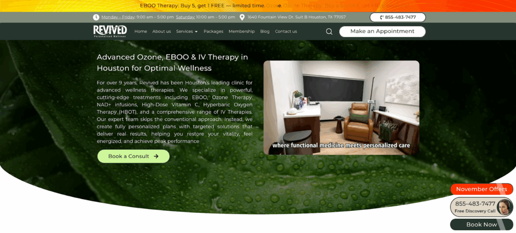 Folks schedule appointments with Myrevived when they need superior wellness providers in Houston. The clinic has choices like ozone and hyperbaric oxygen therapies that enchantment to celebrities and on a regular basis individuals. Shoppers can even entry IV providers to really feel higher with pure nutritional vitamins.